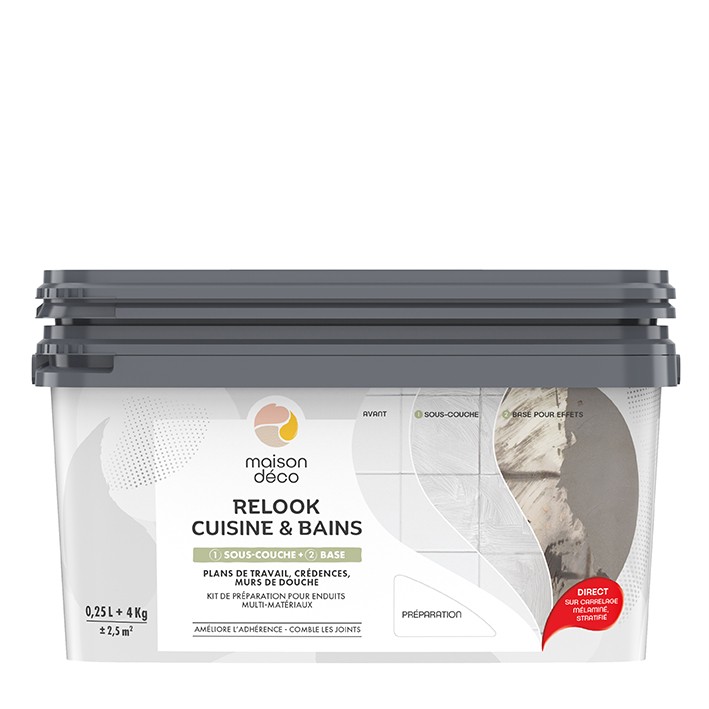 Maison Déco vous propose des peintures cuisine et des peintures salle de bains spécialement conçues pour résister à l'humidité et aux taches. Elles protègent vos surfaces (carrelage, bois, métal…) tout en sublimant votre pièce d’eau grâce à un nuancier de couleurs varié et des effets tendances.