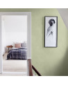 Le mur principal, revêtu de notre enduit Reliss Mat nuancé Lichen, installe une atmosphère d'une douceur exceptionnelle. Cette nuance estivale, offre une richesse et une profondeur qui change subtilement avec la lumière. Il ne s'agit pas d'une couleur, mais d'une ambiance qui évoque l'authenticité et le retour au naturel. Il est parfaitement épaulé par le mur adjacent en Gris Cendré, un neutre essentiel qui vient stabiliser l'ensemble, renforçant la sensation de cocon et de tranquillité absolue.