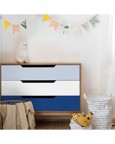 Vous souhaitez pousser encore plus loin la personnalisation afin d’obtenir un meuble unique ? Mixez les 14 couleurs de la gamme avec les effets bois de Relook Meubles Effet Bois.