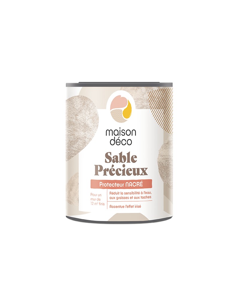 Le PROTECTEUR NACRE protège Sable précieux et accentue son aspect nacré. Il empêche la pénétration des liquides, graisses et taches.