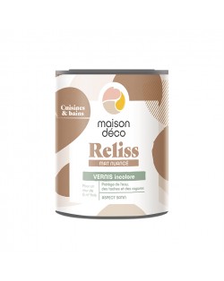 - Vernis cuisines et bains aspect satin Reliss mat nuancé : idéal pour des murs 100% lessivables, protège de l’eau, des taches et des rayures. Son aspect satiné modifie légèrement la teinte